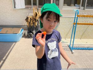 先日苗を植えたと思ったら、お友だちのトマトの実がなりはじめました!まんまるとした赤いおいしそうなトマトです。 おいしかったかな?