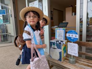 今年度も玄関に募金箱を設置しています。車イス募金のご協力をお願いします。 今日は幼稚園のお友達が募金をしてくれました。ありがとう!