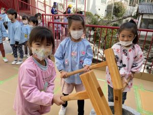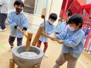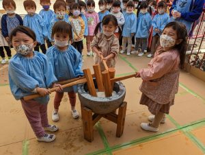 おもちつきをしました 2022年12月3日 最終更新日時 : 2022年12月3日 waku1 この日はとても寒かったけど、みんな寒さに負けずもちつきを頑張ったね!おもちをつく前には蒸したもち米の香りにおなかすいた!の声も! 年長さんたちは力強く上手に杵をもってつけたね!年少さんは初めてのおもちつきでドキドキしてたね! そしてちっちゃなお友だちはお大きいお友だちがついているのを真剣に見てたね!園長先生やバスの運転手の方・幼稚園の先生・お母さんたちが作ってくれたお持ちを嬉しそうに持って帰っていました! \ 最新情報をチェック /