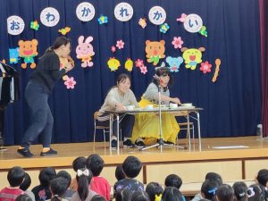 お別れ会をしました 2025年3月11日 最終更新日時 : 2025年3月11日 waku1 年長児さんも残り僅かな幼稚園生活となりました。 年長児さんのお別れ会を本日開催しました。先生の劇、面白かったね! 小さなお友だちからのお祝いの歌、嬉しかったね! 年長児さんからの歌、さみしくなったね。 お別れ会の後は年長児さんが小さなお友だちの保育室を訪ねてくれて一緒に給食を食べました。おいしかったね! \ 最新情報をチェック /