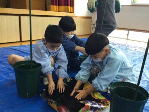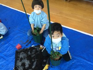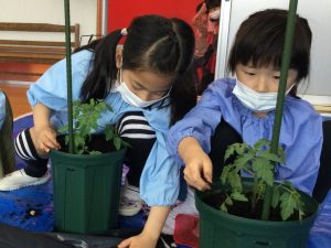 トマトの苗を植えました 2022年5月11日 最終更新日時 : 2022年5月11日 waku1 今日は年長児さんはトマトの苗植えをしました。あいにくの雨だったので、ホールで行いましたよ。 初めての苗植え。先生や運転手の方に手伝ってもらいながら、みんな上手に植えることができましたね。おいしいトマトができますように! \ 最新情報をチェック /
