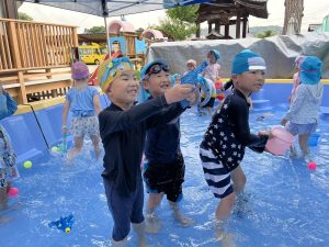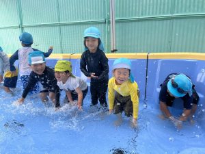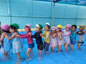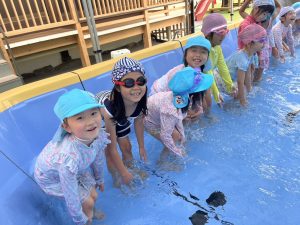 月曜日から待ちに待ったプール遊びが始まりました。最初はちょっと!?冷たかったけど、だんだん水に慣れてきて、最後は冷たさも忘れ元気いっぱい楽しみました!!