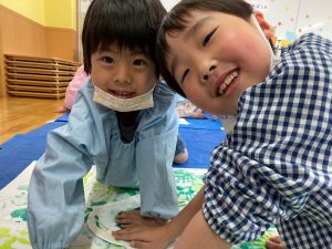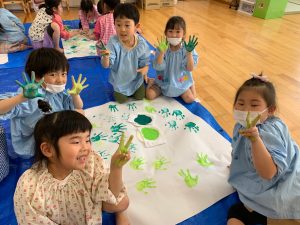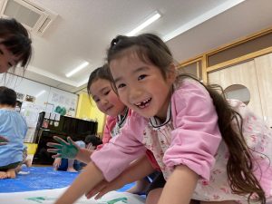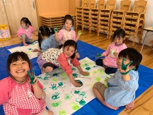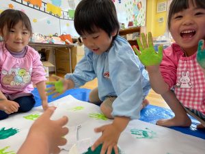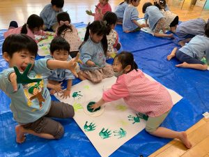 みんな手に絵の具をつけて思いっきり楽しんでいました。