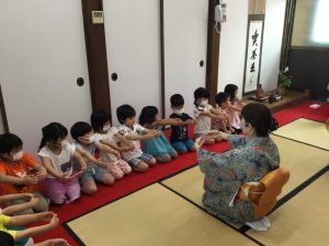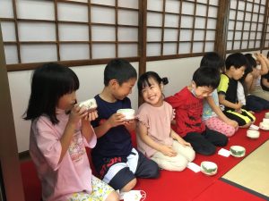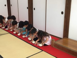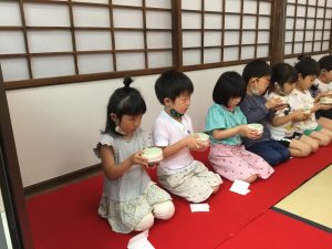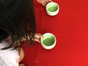 初めての茶道のレッスン 2021年6月16日 最終更新日時 : 2021年6月16日 waku1 今年から茶道のレッスンが始まりました。まずはご挨拶から! 「真(しん)」「行(ぎょう)」「草(そう)」のお辞儀を習いました。 みんな上手にできましたね。お菓子をいただいた後、お抹茶をいただきました。 初めてのお抹茶、どんな味かドキドキしてたね。とてもおいしくておかわりした園児もいましたよ! 次回も楽しみだね! \ 最新情報をチェック /