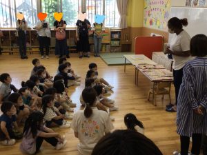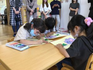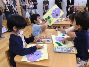 もも組さんは英会話のレッスンと6月の製作をお母さんたちに見てもらいました。英会話では大きな声で発表できていましたね。みんな真剣にレッスンに取り組んでいましたね。