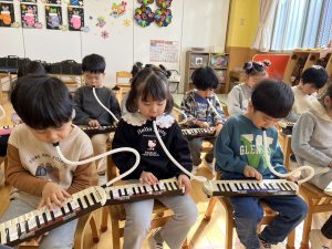 年中組さんのピアニカ練習 2024年2月8日 最終更新日時 : 2024年2月8日 waku1 年中組さんが合同でお遊戯会で披露するピアニカ奏の練習をしました。 みんな真剣に練習しています!本番は素敵な音色を聴かせてくれそうです♪ \ 最新情報をチェック /