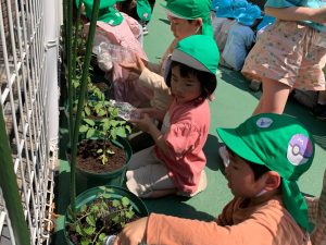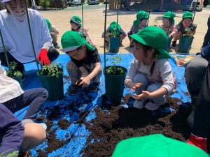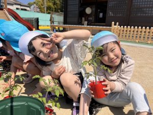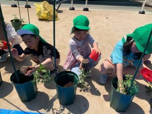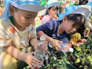 年長児はトマトの苗植えをしました