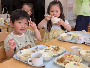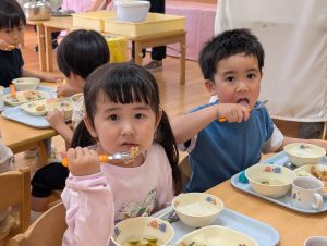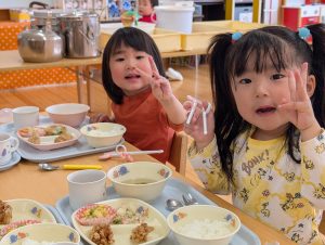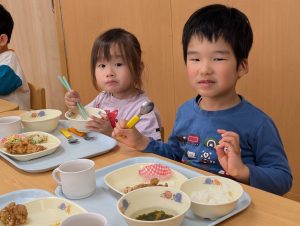 給食ってたのしいな! 2025年4月21日 最終更新日時 : 2025年4月21日 waku1 今日から通常保育の開始です。年少組さんの中には初めて給食を食べるお友だちがいます!今日はみんなの大好きな唐揚げ!!!にこにこ笑顔でほおばる年少組さんでした! \ 最新情報をチェック /