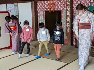 茶道のレッスンで 2022年11月24日 最終更新日時 : 2022年11月24日 waku1 先日年長さんの茶道のレッスンの一環で、畳をすり足で歩く練習をしました。みんな初めての歩き方で上手に歩けなかったけど一生懸命に取り組んでいました! \ 最新情報をチェック /