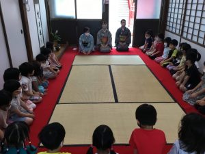 今年から茶道のレッスンが始まりました。まずはご挨拶から! 「真(しん)」「行(ぎょう)」「草(そう)」のお辞儀を習いました。 みんな上手にできましたね。お菓子をいただいた後、お抹茶をいただきました。 初めてのお抹茶、どん […]