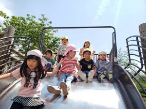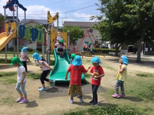 火曜日の晴れた日に年中組さんは道後公園に園外保育に行きました。 暑さにも負けず思いっきり楽しんだね! お弁当もおいしかったぁ。またいきたいなぁ。