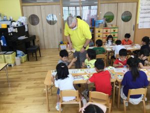 今日は楽しみにしていたお店屋さんごっこの日。 この日の為に、みんなで協力して準備をしてきました。 品物もお店の看板もたくさん作りました。 バスの運転手さんや事務の先生のお財布も作って渡したよ。 理事長先生もお買い物しに来 […]