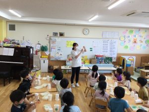 今日は年長組さんの保育参観がありました。 みんなお家の方が来てるのでそわそわしてたね。 でも一番緊張してたのが先生たちでした!