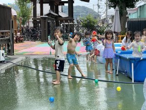 今週から水遊びが始まりました。 みんな笑顔がはじけてます! 暑い中、水に入って楽しかったね!