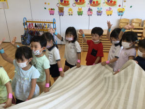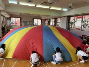 今日は年中児さんのバルーンの練習風景をご覧ください。 みんな力いっぱいリズムに合わせてバルーンを持ち上げたり揺らしたり頑張りました!!