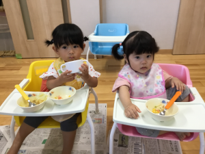 今日はみんなが大好きなカレーの日でしたね!お腹いっぱい食べて、満面の笑みでした!