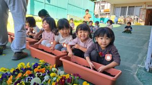 今日はお天気も良く、ガーデニング日和。 ちゅうりっぷ組さんとたんぽぽ組さんはプランターにパンジーやビオラの花を植えました。園長先生や担任の先生に教えてもらいながら上手に植えることができました。 チューリップの球根も植えま […]