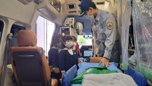 消防の方と一緒に避難訓練しました