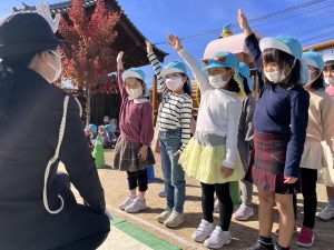 今日は交通安全協会の方たちと「まつやま だいすけ君」(愛称:だいちゃん)と一緒に交通安全のお話を聞きました。協会のお姉さんから「とまとのお約束」を教えてもらったね! と:止まって ま:待って と:飛び出さない DVD鑑賞 […]