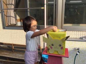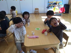 先日N君兄弟のお父さんから、おいしいオレンジジュースの差し入れをいただきました。 お部屋でお友だちと乾杯したり、お外遊びの合間においしくいただきました!お友だちが、「ジュースパーティーだ!!」と喜んで飲んでいました!