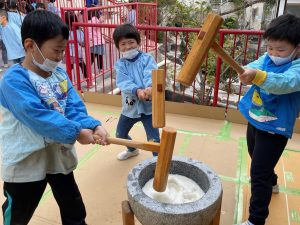 この日はとても寒かったけど、みんな寒さに負けずもちつきを頑張ったね!おもちをつく前には蒸したもち米の香りにおなかすいた!の声も! 年長さんたちは力強く上手に杵をもってつけたね!年少さんは初めてのおもちつきでドキドキしてた […]