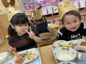 今日は一足早いクリスマス会をしました。ホールで先生たちの劇やみんなで一緒にクリスマスの歌を歌ったね!サンタさんにも会えたし、プレゼントをもらったお友だちの笑顔がいっぱいの一日でした!