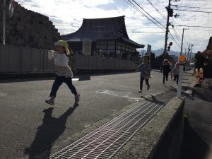 今度は年長組さんです。今日はコースの確認で一斉にスタートしました。一番長い距離を走る年長さん!本番が楽しみです!
