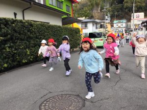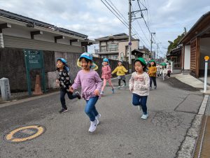 今日は実際に年少組さんが走るコースをみんなで走ってみました。みんな長い距離で大変だったけど、とてもよく頑張りました!
