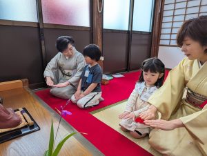 年中組さんは今年度から茶道のレッスンが開始です! 初めてのお作法や正座で足がしびれて立てなかったりといろいろありましたが、講師の先生のご指導通りにうまくできましたね! 和菓子がおいしかったようです・・・!