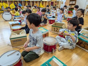 年長組さんは和太鼓の衣装を着て練習しました。 法被を着ての練習はみんな引き締まってかっこよかったよ! 上手に演奏出来てました! 明日の演奏に乞うご期待!!