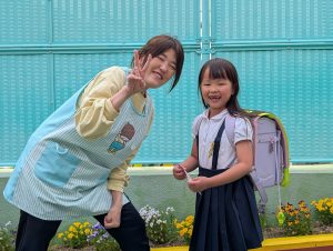 ランドセルを見せに来てくれました!真新しいランドセル!久しぶりの笑顔に先生たちも嬉しかったよ!元気に小学校生活楽しんでね!