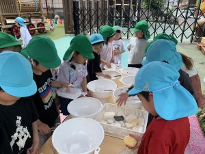 年長児さんは今日は園庭で思いっきり泥遊びやしゃぼん玉や泡作りを楽しみました!みんな大喜び! はしゃいでいたのはお友だちだけではありません!年長の担任の先生もお友だちに負けじと思いっきり弾けて楽しんでましたね!さて誰が一番 […]