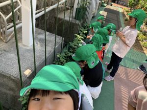 ひまわり組さんは毎日自分たちの植えたトマトに水やりを欠かさずしています。毎日毎日トマトを観察して日々の変化を実感しています!
