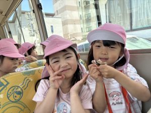 4日から3日間園外保育に出かけました。3日間ともとてもいいお天気でした。トーマスバスやピカチュウバスに乗ってわくわくどきどき思いっきり楽しんだね! 園外保育の画像は学年ごとに掲載します。