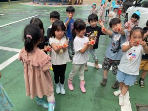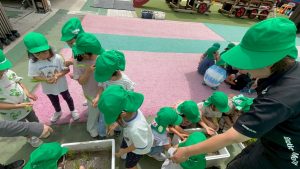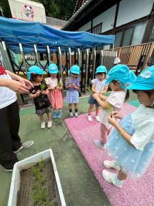 年少組さんは夏の暑さへの体力作りに午前中園の周りをお散歩してきました!いろんなお花や虫やご近所さんたちにご挨拶!暑さなんて気にならない!