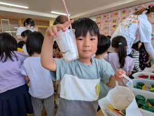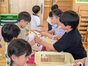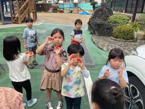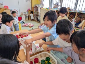 洗ってすぐに食べたお友だちもいましたが、他のお友だちは、大事に袋に入れてお家の人に見せてあげるんですって!